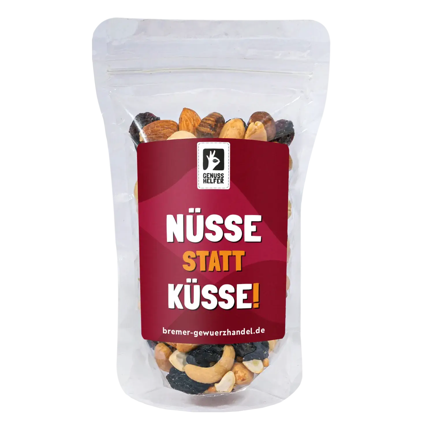 GeNUSSmischung mit dem Spruch: Nüsse statt Küsse!